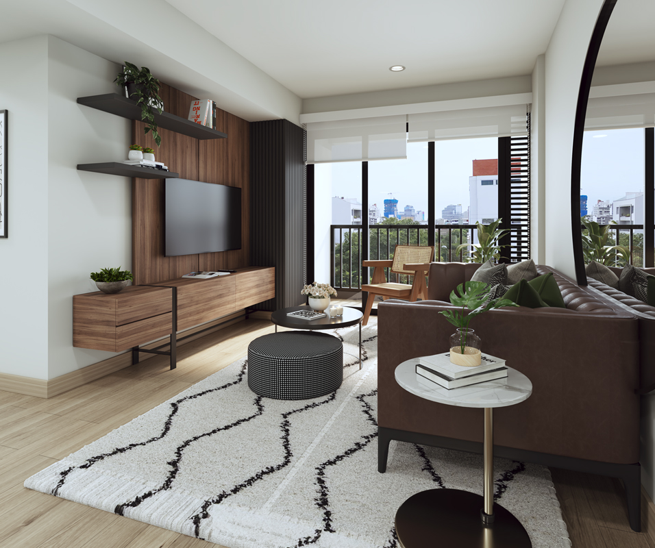 Todos los departamentos tienen vista a la calle, con ventanas muy amplias y mucha iluminación natural.
